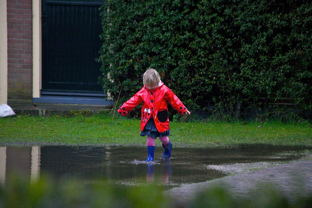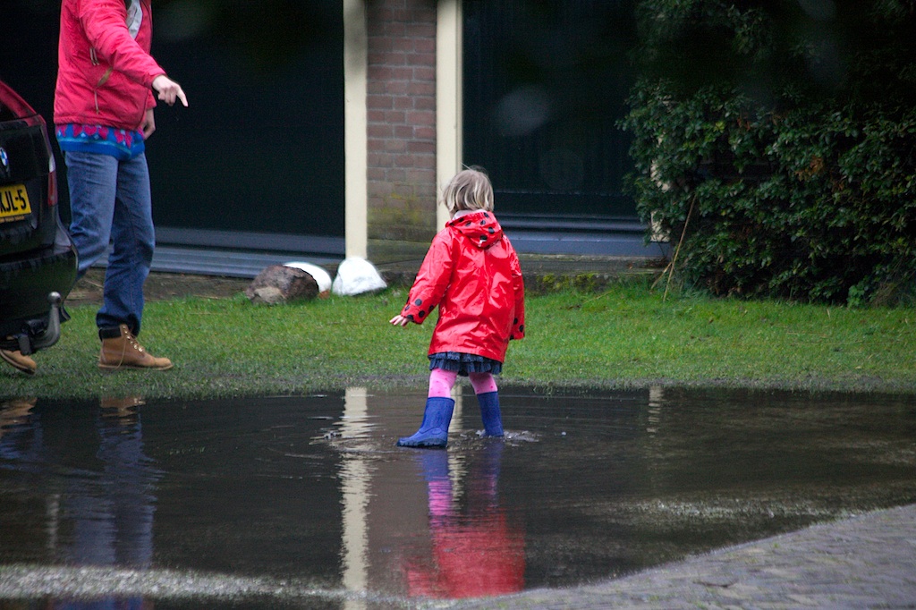 Dat gezeur altijd van je moeder! Ik kwam net onder de douche vandaan omdat ik een uurtje daarvoor, toen ik met mama en mijn zusje Eva in de stromende regen terug liep van oma Janny naar de Raadhuisstraat, in het paadje langs het kerkhof al springend door de plassen plat op mijn buik in een enorme modderplas terecht was gekomen. Mijn witte maillot was zwart, en mijn blauwe jas, die mama vanochtend van de waslijn had gehaald, kon meteen weer in de wasmachine. Het water in mijn rode laarsjes stond tot aan de rand. Gelukkig heb ik ook nog blauwe laarzen, en nadat ik weer droge, schone kleren had, kon ik mooie evenhet testen of daar net zoveel water in kan als in mijn rode laarden. Moest ik van mama per se droog blijven en mocht ik niet meer in de plas spelen…