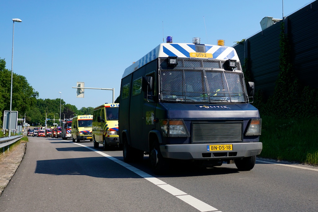 Ik was op dat tijdstip in Amsterdam bij de Spaarndammerdijk in het Westerpark en heb vandaar de hele stoet voorbij zien gaan.Amsterdammers om mij heen dachten eerst dat er een ramp was gebeurd in de stad..Later werd er van uitgegaan dat de Hulpdiensten een protestactie hielden. Er was ook een stroomstoring gistermiddag in Amsterdam waardoor metroverkeer niet mogelijk was. Het was in het centrum van Amsterdam zeer druk en het verkeer was volledig gestagneerd.Ik vind Amsterdam erg leuk maar gisteravond vond ik het des te fijner om terug te zijn in Blaricum. Reaktie van Maria Piel.