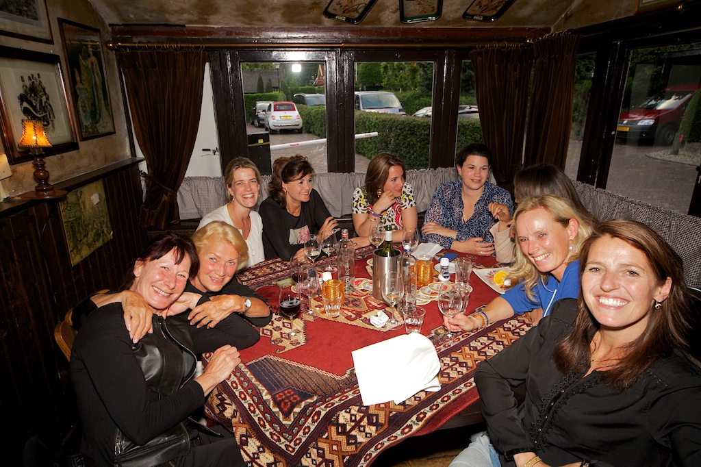 Aanwonende vrouwen (‘dames’) van de Driftlaan zitten aan aan het traditionele De Driftdames-diner (8e keer, niet allemaal aanwezig, niet allemaal aandacht voor de lens). Het bleef nog lang gezellig.
