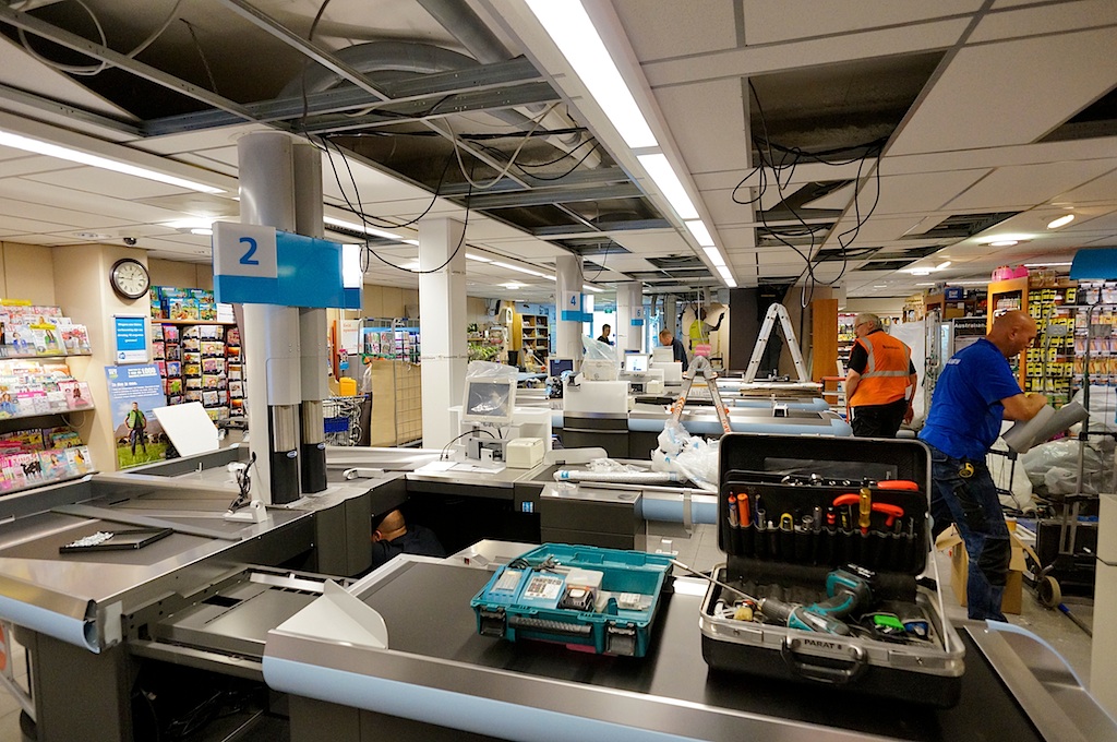 AH: vandaag gesloten – morgen onder meer nieuwe servicecounter, nieuwe boodschappenbanden, nieuwste pinapparatuur, geen prijsverhogingen.