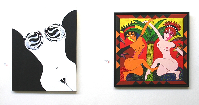 … in Huizen deze twee werken van Ellen Vroegh, na klachten van baliemedewerksters en sommige bezoekers, vanuit de centrale hal van het gemeentehuis werden verwijderd en ergens achteraf een plaatsje kregen.