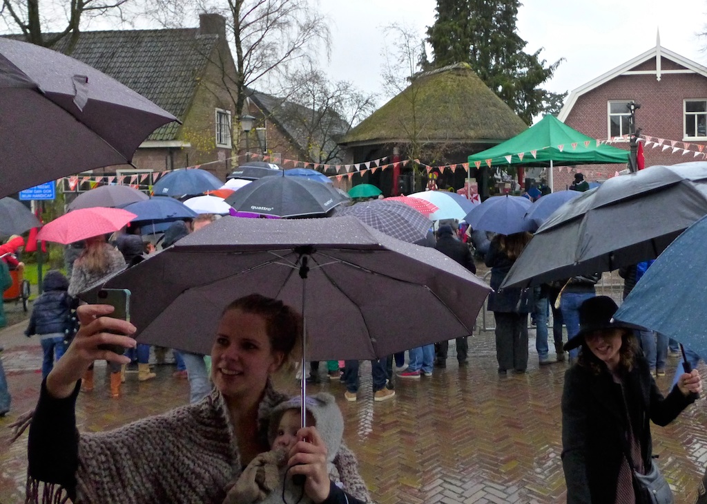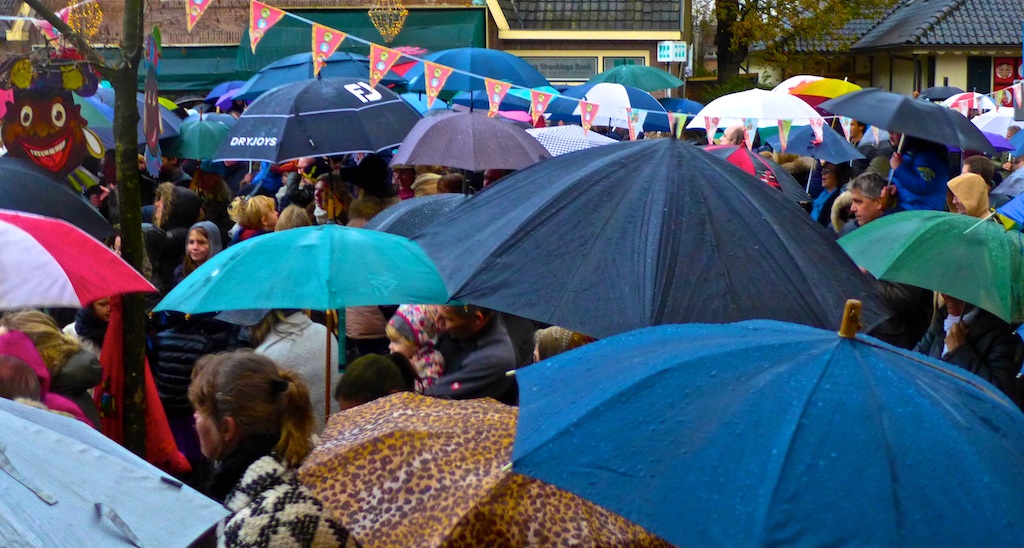 Oog: daar regende het niet en los daarvan is het leven vol keuzes – en vragen: waarom ook geen intocht in Blaricum-Crailo, waarom ook geen intocht in het steeds kinderijker wordende Blaricum-Meent?