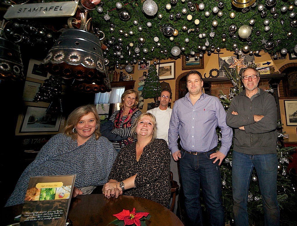 Tijdens het in kerstsfeer brengen van Café d’Ouwe Tak (sinds kort IENS Topper 2016) is gisterenmiddag iets vreemds gebeurd. Terwijl iedereen druk en zinvol bezig was (eerste foto), zat er op de kerstboom eerst niet en opeens wél een ster. Niemand kon het verklaren. Bazin Marise Lindeman – van de Koot wist ook van niks (tweede foto), en de met spoed gebelde Michelin-sterrenorganisatie kon ook geen verklaring geven. Naast de IENS-waardering is ook een ster voor d’Ouwe Tak logisch, maar vreemd blijft het hoe die er zo gekomen is …