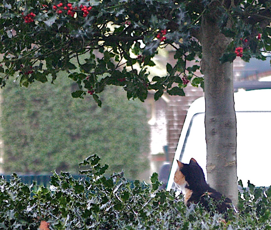 … omlaag door de hulst is veel lastiger dan omhoog.