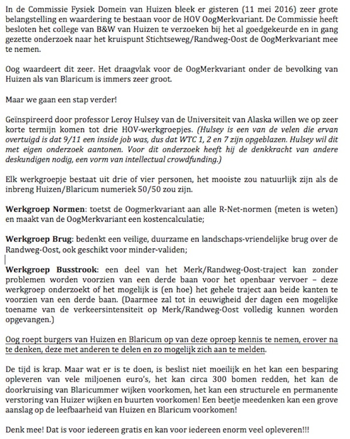 Oproep – denk mee over HOV-OogMerkvariant Oog op Blaricum kwesties 13 mei 2016 Reacties naar hov@oogopblaricum.nl Delen kan hier: Share op Facebook (Opent in een nieuw venster) Facebook Delen op X (Opent in een nieuw venster) X Email a link to a friend (Opent in een nieuw venster) E-mail Afdrukken (Opent in een nieuw venster) Print Delen op WhatsApp (Opent in een nieuw venster) WhatsApp Meer Share on Threads (Opent in een nieuw venster) Threads Vind-ik-leuk Aan het laden... Gerelateerd Gepubliceerd door Oog op Blaricum Bekijk alle berichten van Oog op Blaricum Gepubliceerd 13 mei 2016