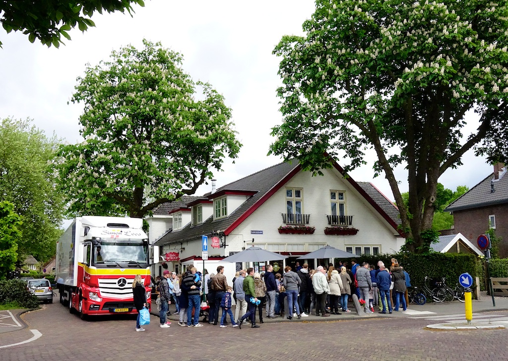 … nee, niet de vrachtwagen, maar de rij bij De Hoop.