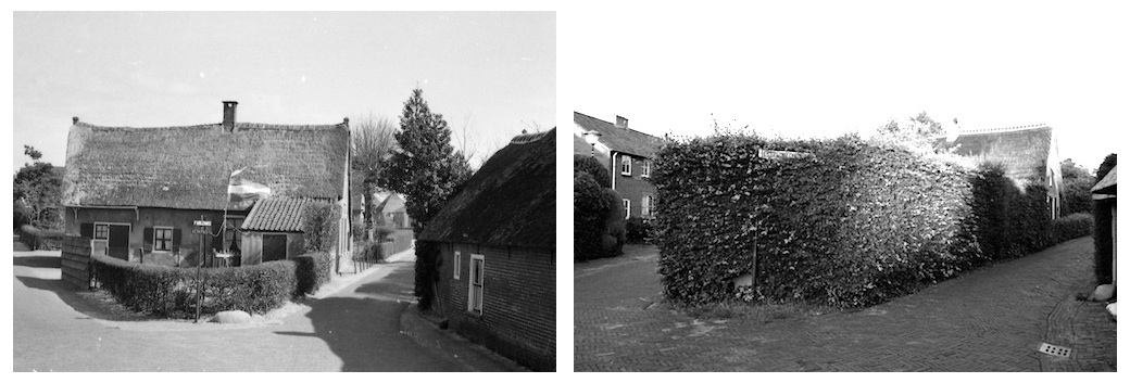 2. En dan stond er naast die houten schutting nog een hooiberg, de dam en groentetuin zag er bij Lammert en Heintje Majoor-Vos altijd super netjes uit. Jammer dat dit mooie huisje bijna in zijn geheel aan het zicht onttrokken is. De leilinden aan de Kerkpadzijde groeien ook al ver over de weg.