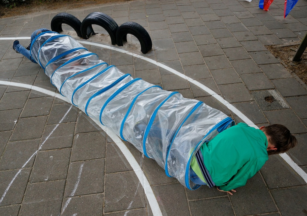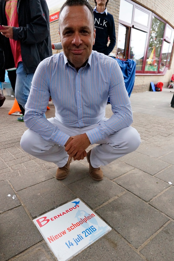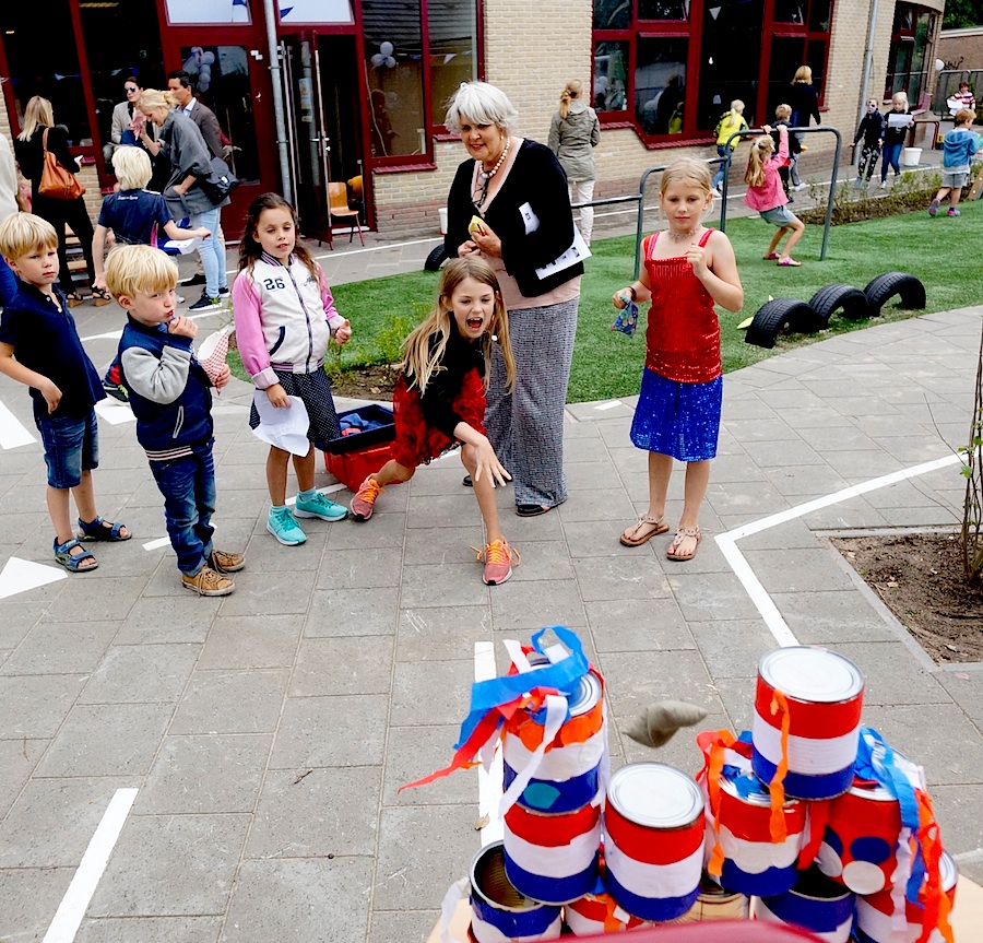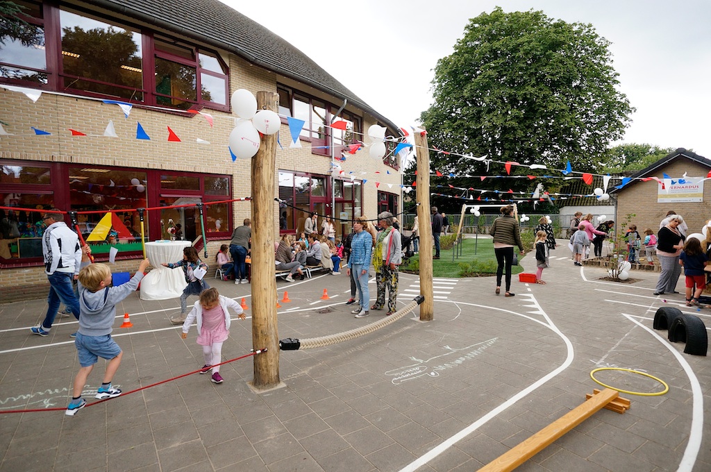 Met de bijbehorende vrolijkheden en versnaperingen voor jong en oud is vanmiddag het nieuwe schoolplein van de Bernardus officieel in gebruik genomen. Onderdeel is ondermeer een cadeau van buren Dick Raven en Tankstation Vos: een milieuvriendelijke benzinepomp.