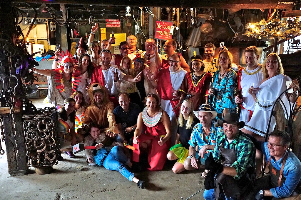 Tribes-hoofdman Eduard Schaepman is in de namiddag met zijn ruim 20 hoofdkantoor-Tribesianen neergestreken in Smederij Van den Bergh. De historisch verantwoord geklede groep vermaakt zich daar met stamachtige zaken als zuipen, selfies, braaivlees vreten, crèpes, disco-bewegingen (stampetamp) en een optreden van een mysterie guest. Daarna gaat het blij en zorgeloos verdwaasd aan de wankelwandel naar het kampement op De Woensberg. Tribes-CEO Schaepman verwacht dat de komende 12 maanden voor zijn unique, fully equiped workspaces-onderneming nog succesvoller worden – en dat er volgend jaar dus een nog groter stamfeest komt.