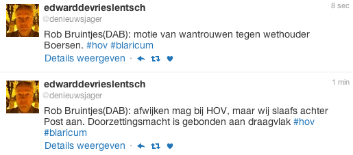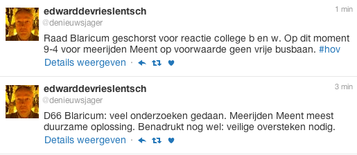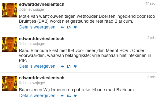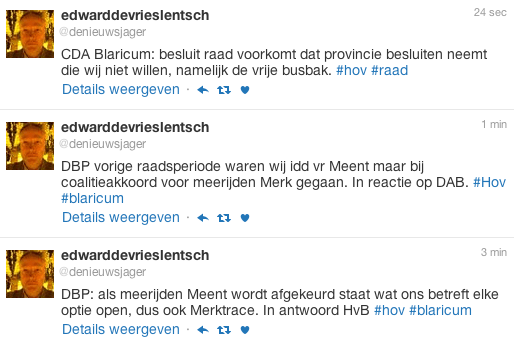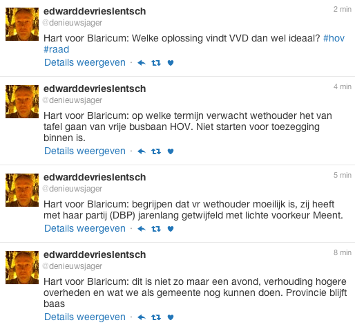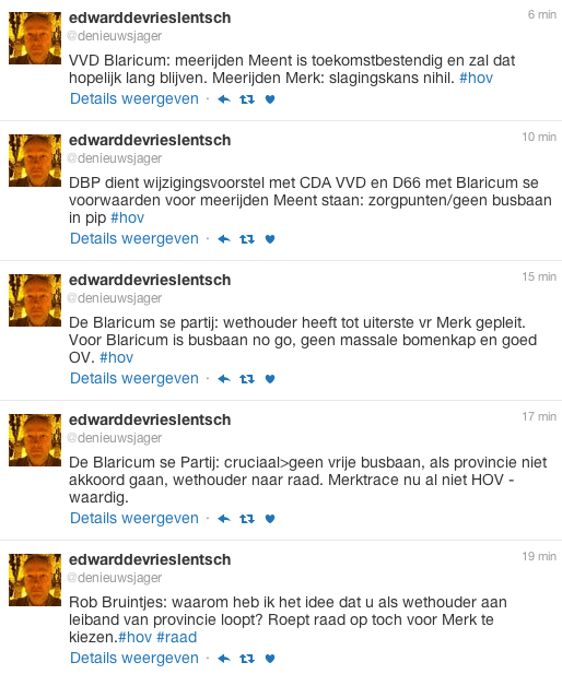 (tweets van Edward de Vries Lentsch, De Gooi en Eemlander – te lezen van beneden naar boven.)