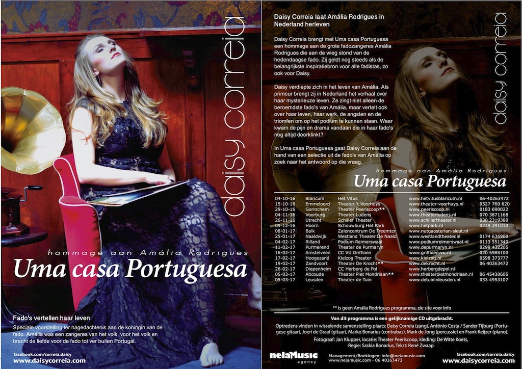Fadozangeres Daisy Correia treedt vanavond op in Het Vitus met het theaterprogramma Uma casa Portuguesa, een hommage aan de fadokoningin Amália Rodrigues. Zij was degene die maakte dat de fado nog steeds voortleeft. Amália is anno 2016 nog steeds de inspiratiebron voor vele fadistas. Zij durfde in haar tijd de fado te veranderen en deze te zingen zoals zij het voelde. Dat doet Daisy ook al vanaf het begin van haar fadocarrière.
