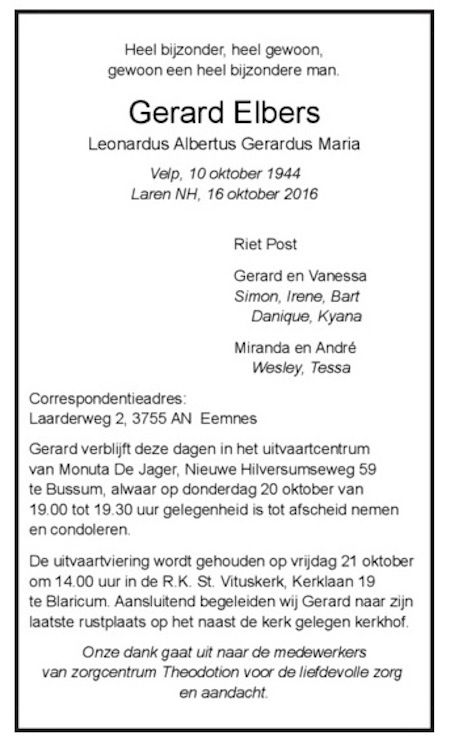 Vituskerk: uitvaart van Gerard Elbers.