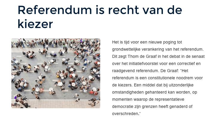 2016 – De Graaf: ‘Drempel referendum moet omhoog van 300.000 naar 600.000.’