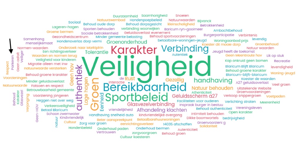 Deze zin staat er ook in: ‘Door de gemeente moet samen met de ondernemers wel worden nagedacht over slimme en effectieve oplossingen op het gebied van parkeren (blauwe zones, parkeerplekken) zonder de (dorpse) identiteit van Blaricum aan te tasten.’
