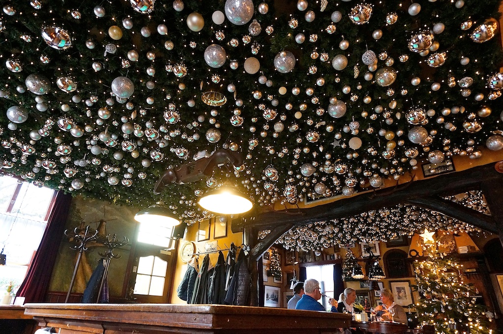 De vraag is: hoeveel kerstballen hangen er aan de plafonds van café d’Ouwe Tak?