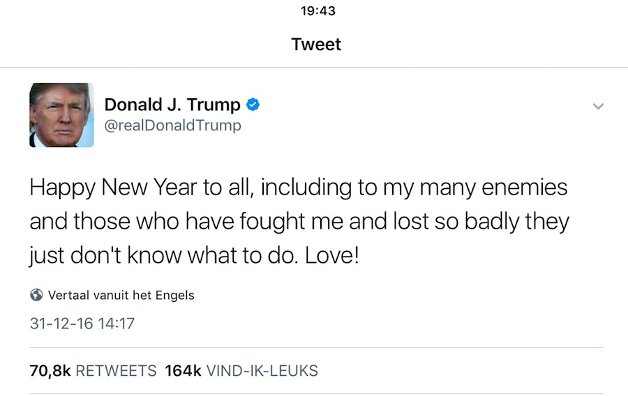 Aansprekende nieuwjaarswensen Oog op Blaricum leven, nieuws 1 januari 2017 Makelaar Jacques Walch Universiteit van Amsterdam President Donald Trump Fotomodel Marvy Rieder Delen kan hier: Klik om te delen op Facebook (Opent in een nieuw venster) Facebook Klik om te delen op X (Opent in een nieuw venster) X Klik om dit te e-mailen naar een vriend (Opent in een nieuw venster) E-mail Klik om af te drukken (Opent in een nieuw venster) Print Klik om te delen op WhatsApp (Opent in een nieuw venster) WhatsApp Meer Klik om te delen op Threads (Opent in een nieuw venster) Threads Vind-ik-leuk Aan het laden... Gerelateerd Gepubliceerd door Oog op Blaricum Bekijk alle berichten van Oog op Blaricum Gepubliceerd 1 januari 2017