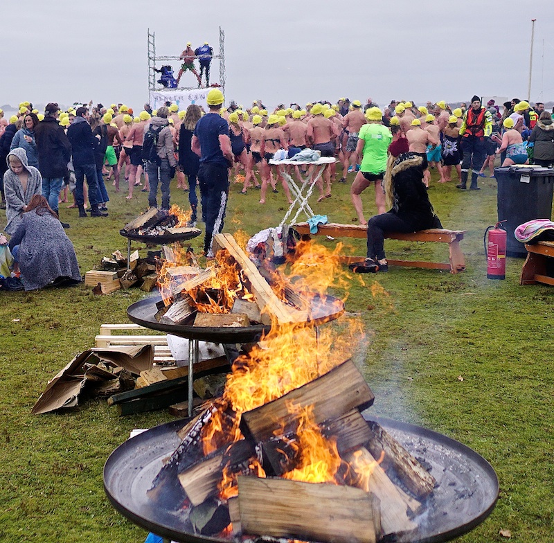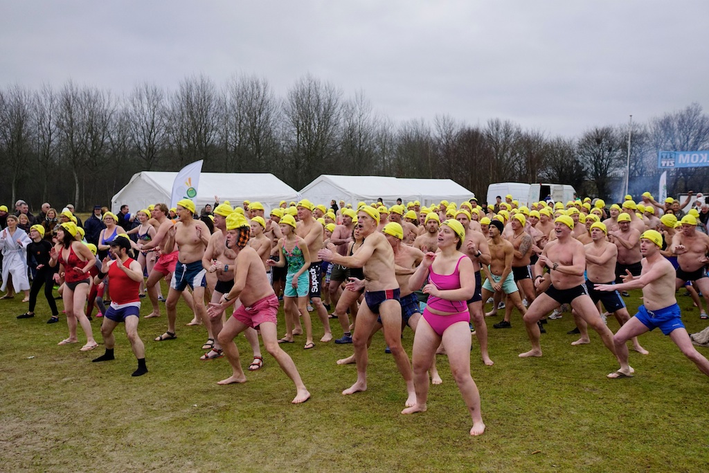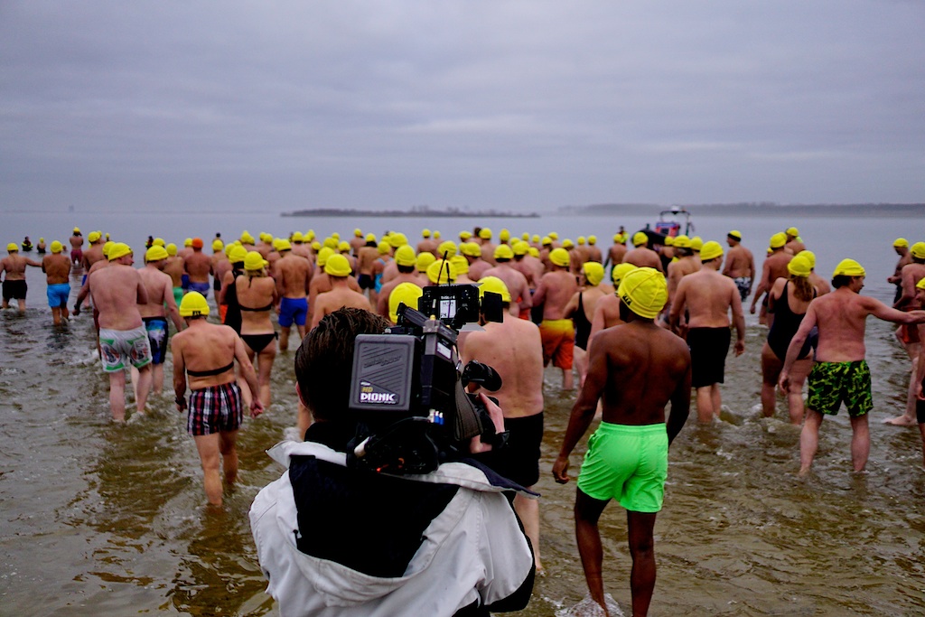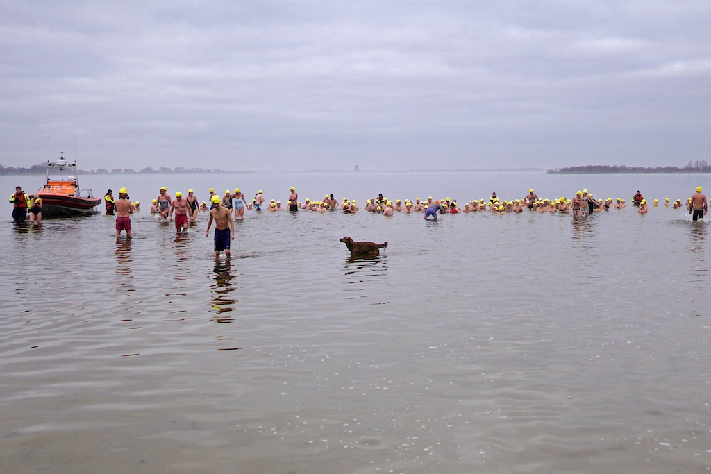… dan 50 stappen rustig het water inlopen (het is géén ordinaire Worst Nieuwjaarsduik!); …