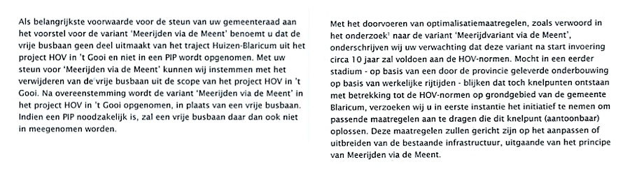 Dat zij er vervolgens geen reet mee doet mag blijken uit de grote weerstand tegen de Blauwe Zone en de HOV.