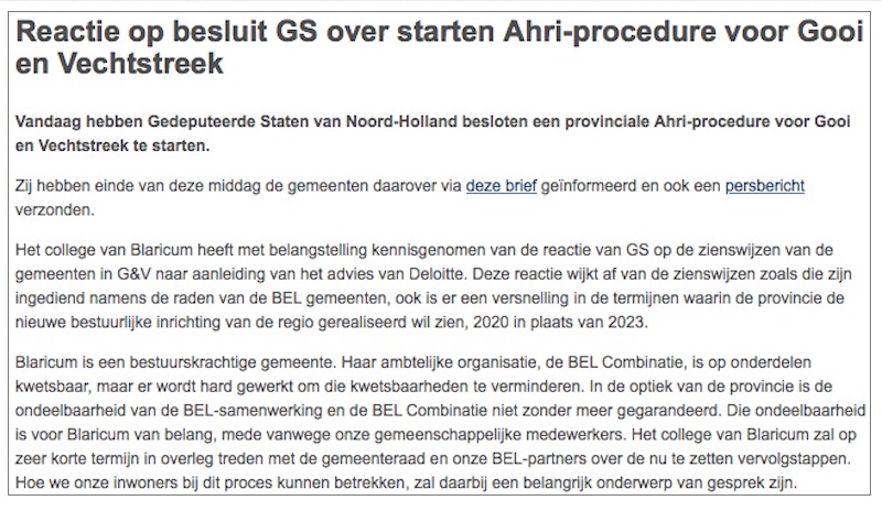 Herindeling: reactie B&W, noodzakelijke kanttekeningen – en hoop