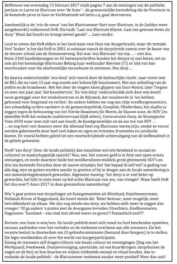 ‘… gewoon leven als dorp.’ – Huh? Oog op Blaricum kwesties, opinie 16 februari 201716 februari 2017 * De BEL is weliswaar op 1 januari 2008 actief geworden, maar er is over gepraat vanaf 2005. Delen kan hier: Klik om te delen op Facebook (Opent in een nieuw venster) Facebook Klik om te delen op X (Opent in een nieuw venster) X Klik om dit te e-mailen naar een vriend (Opent in een nieuw venster) E-mail Klik om af te drukken (Opent in een nieuw venster) Print Klik om te delen op WhatsApp (Opent in een nieuw venster) WhatsApp Meer Klik om te delen op Threads (Opent in een nieuw venster) Threads Vind-ik-leuk Aan het laden... Gerelateerd Gepubliceerd door Oog op Blaricum Bekijk alle berichten van Oog op Blaricum Gepubliceerd 16 februari 201716 februari 2017
