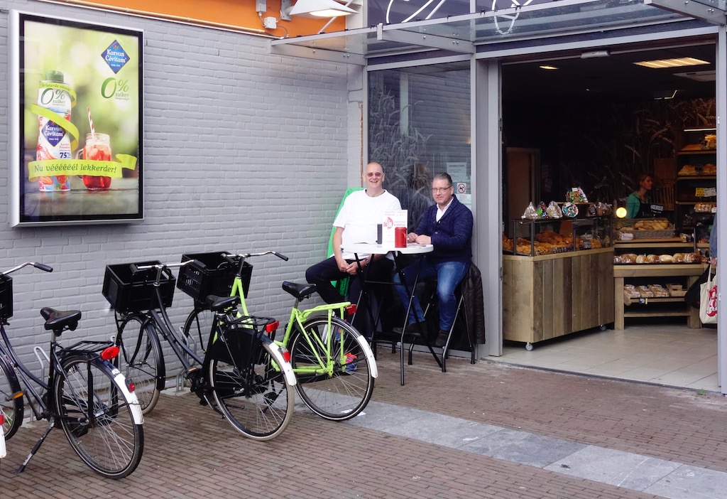 Rob Bruintjes en Bart Muller van DAB – Democratisch Alternatief Blaricum – in Winkelcentrum Bijvanck bezig zieltjes te winnen.