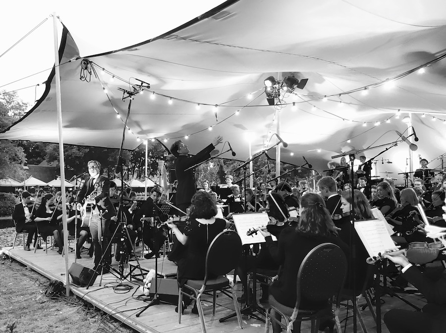 Met Amerfoorts Jeugdorkest o.l.v. dirigent Rolf Buijs en Guus Meeuwis, zang.