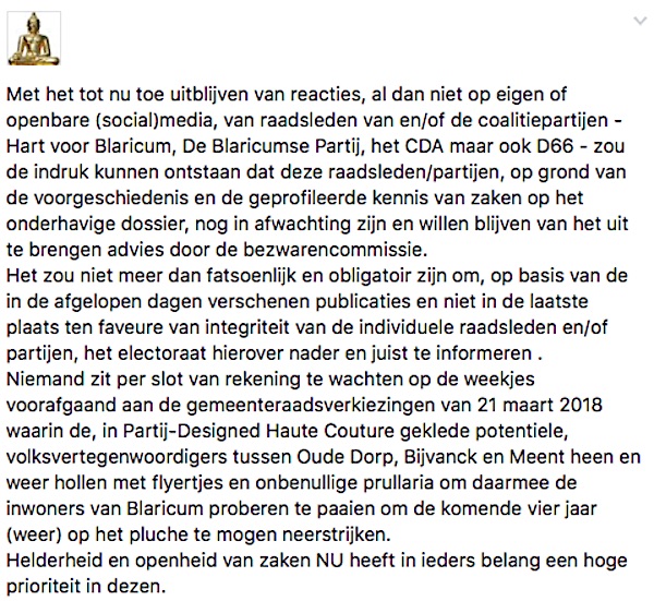 Laatste post van Harry op Facebook – over de BVV-waanzin. Waarover hij recent nog adviseerde: