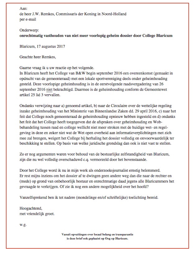 BVV-gate (10c): brief aan de Commissaris Oog op Blaricum kwesties, nieuws 17 augustus 201717 augustus 2017 Delen kan hier: Share op Facebook (Opent in een nieuw venster) Facebook Delen op X (Opent in een nieuw venster) X Email a link to a friend (Opent in een nieuw venster) E-mail Afdrukken (Opent in een nieuw venster) Print Delen op WhatsApp (Opent in een nieuw venster) WhatsApp Meer Share on Threads (Opent in een nieuw venster) Threads Vind-ik-leuk Aan het laden... Gerelateerd Gepubliceerd door Oog op Blaricum Bekijk alle berichten van Oog op Blaricum Gepubliceerd 17 augustus 201717 augustus 2017