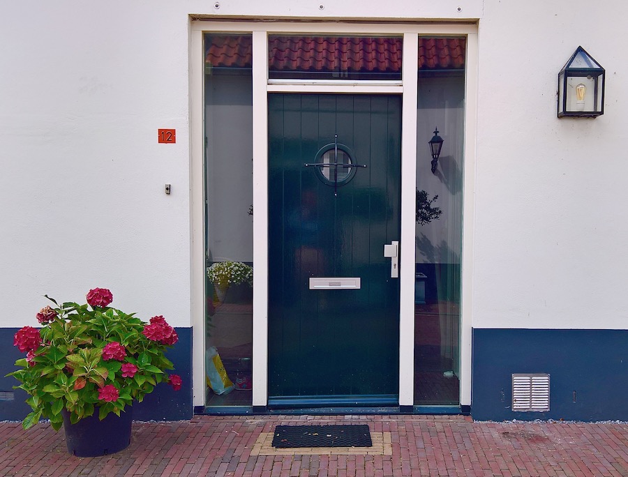 Naast de voordeur graag.
