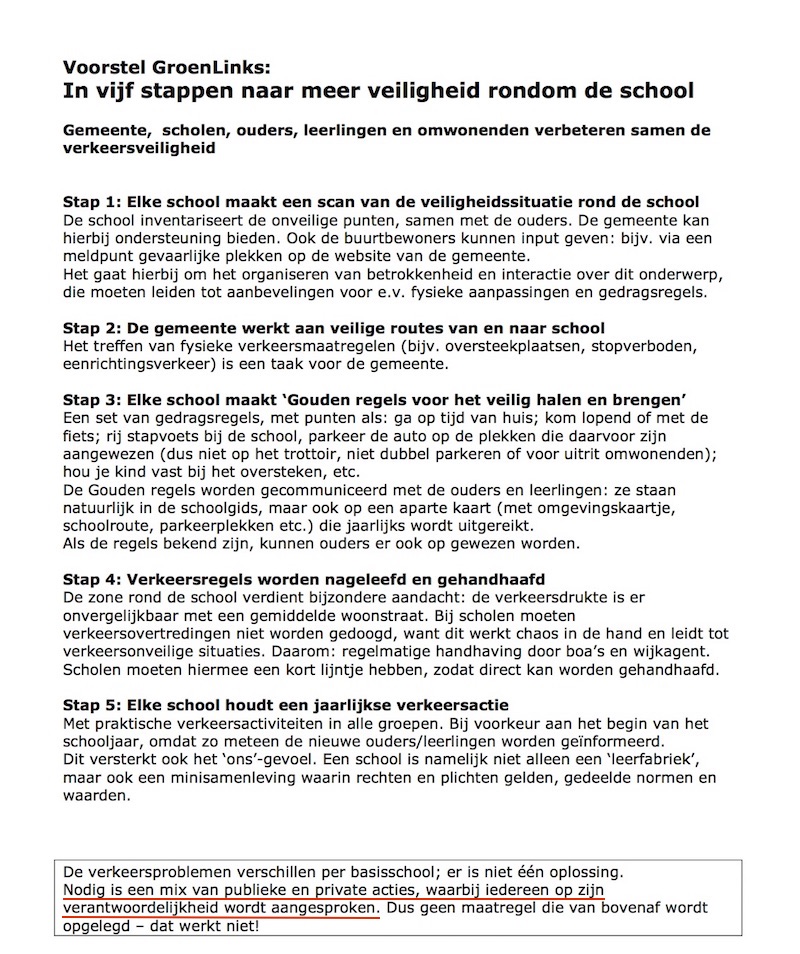 … met op het schoolplein koffie en thee voor de mammies en pappies, dan durft niemand de verkeersregels direct naast de school te overtreden, …