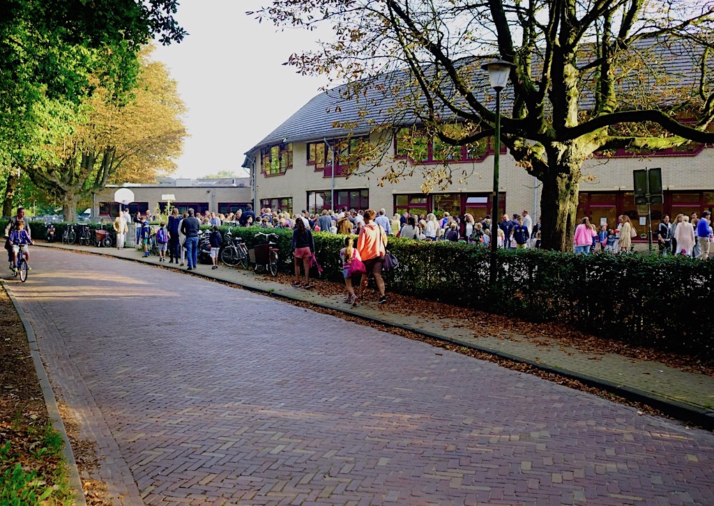 … maar in de omliggende straten was het chaos, niet in de laatste plaats door breng-ouders die heel dichtbij de school wonen, maar toch met de auto komen.