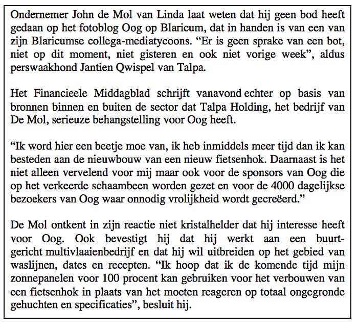 Ik denk, dat bepaalde partijen in Blaricum, Oog wel ‘uit de lucht’ of minimaal gecensureerd zouden willen zien…