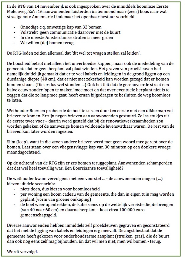 Boosheid om boomloosheid Oog op Blaricum kwesties, milieu, natuur, samenleving 16 november 2017 Delen kan hier: Share op Facebook (Opent in een nieuw venster) Facebook Delen op X (Opent in een nieuw venster) X Email a link to a friend (Opent in een nieuw venster) E-mail Afdrukken (Opent in een nieuw venster) Print Delen op WhatsApp (Opent in een nieuw venster) WhatsApp Meer Share on Threads (Opent in een nieuw venster) Threads Vind-ik-leuk Aan het laden... Gerelateerd Gepubliceerd door Oog op Blaricum Bekijk alle berichten van Oog op Blaricum Gepubliceerd 16 november 2017