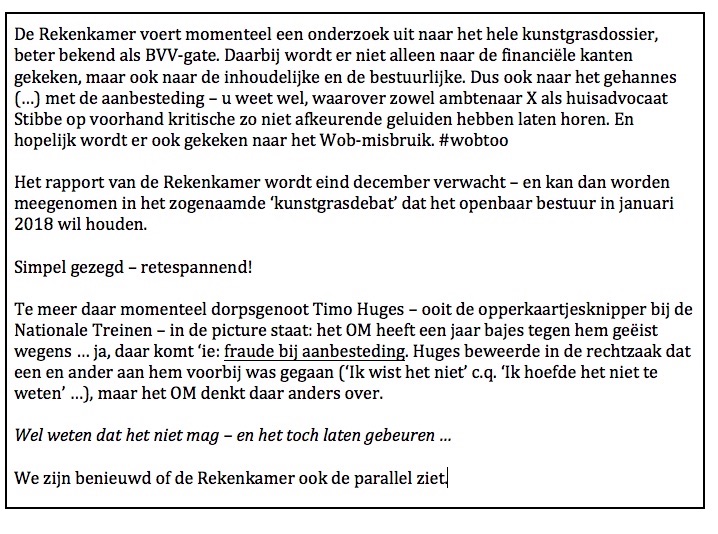 De aanbestedingparallel … Oog op Blaricum kwesties, mensen, niet goed bezig, nieuws, samenleving 21 november 2017 Delen kan hier: Share op Facebook (Opent in een nieuw venster) Facebook Delen op X (Opent in een nieuw venster) X Email a link to a friend (Opent in een nieuw venster) E-mail Afdrukken (Opent in een nieuw venster) Print Delen op WhatsApp (Opent in een nieuw venster) WhatsApp Meer Share on Threads (Opent in een nieuw venster) Threads Vind-ik-leuk Aan het laden... Gerelateerd Gepubliceerd door Oog op Blaricum Bekijk alle berichten van Oog op Blaricum Gepubliceerd 21 november 2017