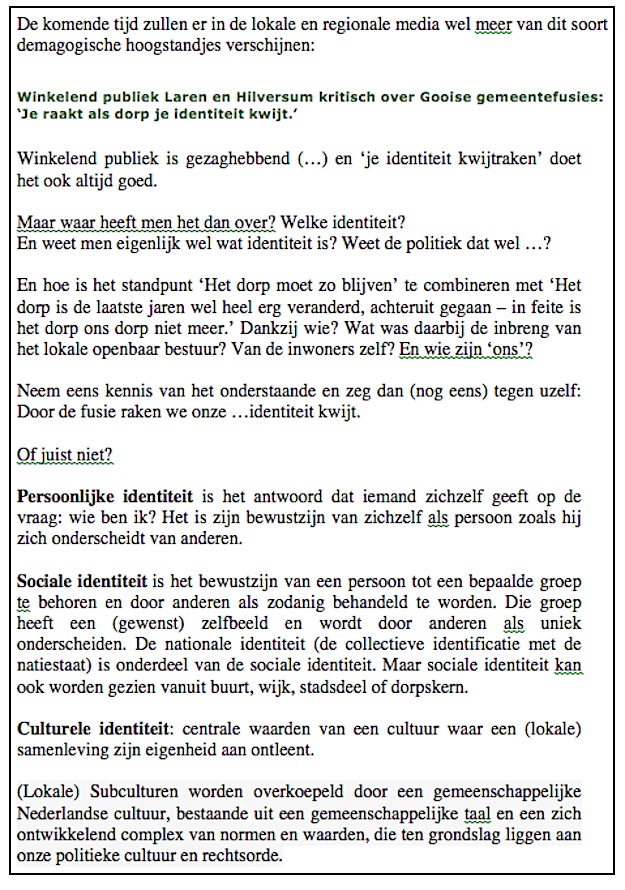 Ter aanvulling een Oog-beschouwing over het fenomeen identiteit – want dat zal de komende tijd wel regelmatig te hooi en te gras worden aangedragen als ‘die wordt bedreigd, die gaat kapot!’ – terwijl men dan volstrekt niet weet waarover het gaat.