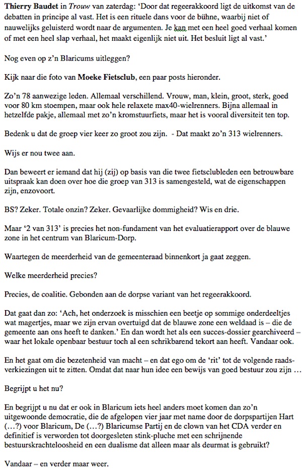 Een gedachte over “Thierry Baudet, Moeke Fietsclub en … de blauwe zone!”
