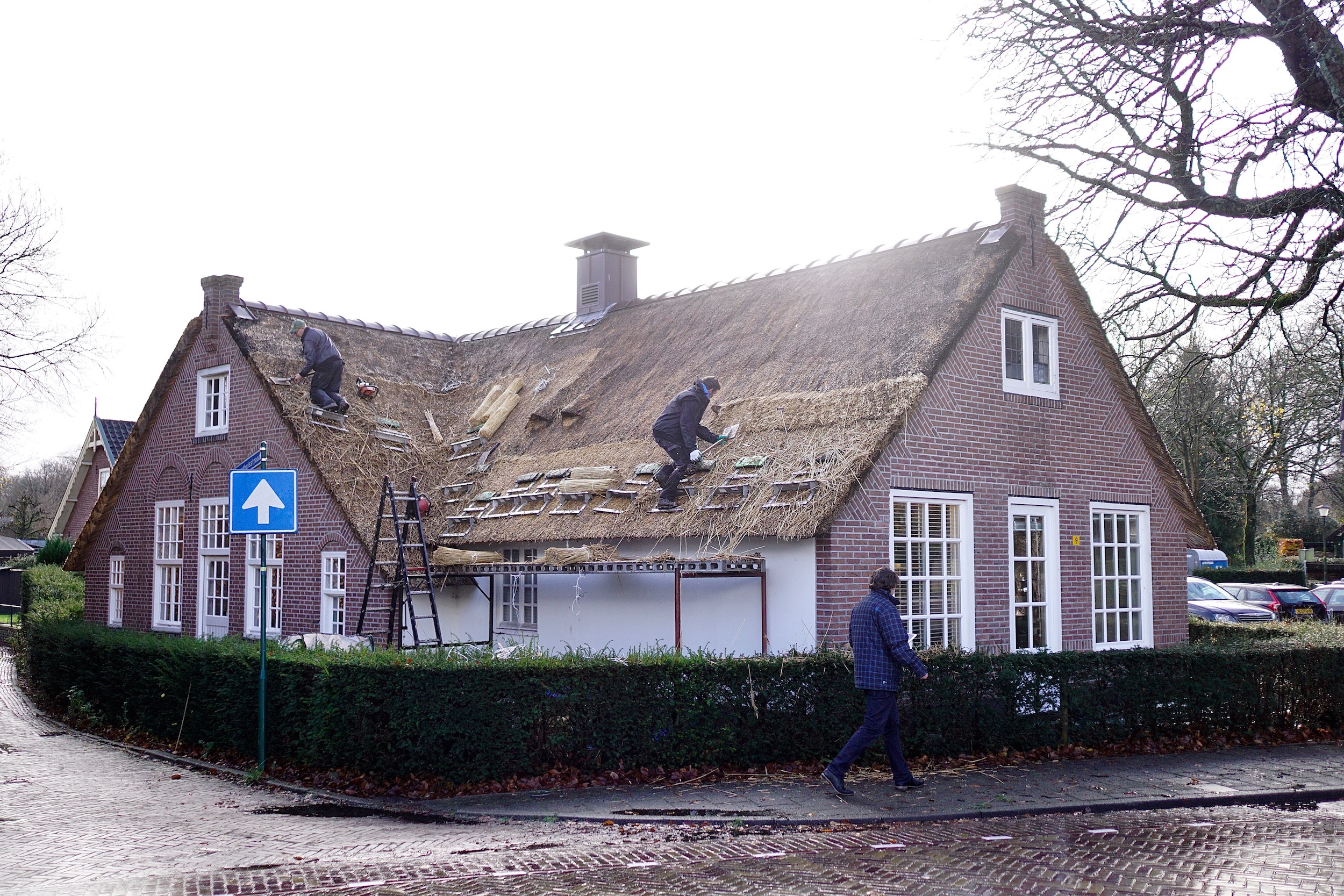 Vakmannen van Rietdekkerbedrijf Wed. de Boer uit Laren maken Blaricum weer een stukje mooier. Goed bezig Anton en Kees.