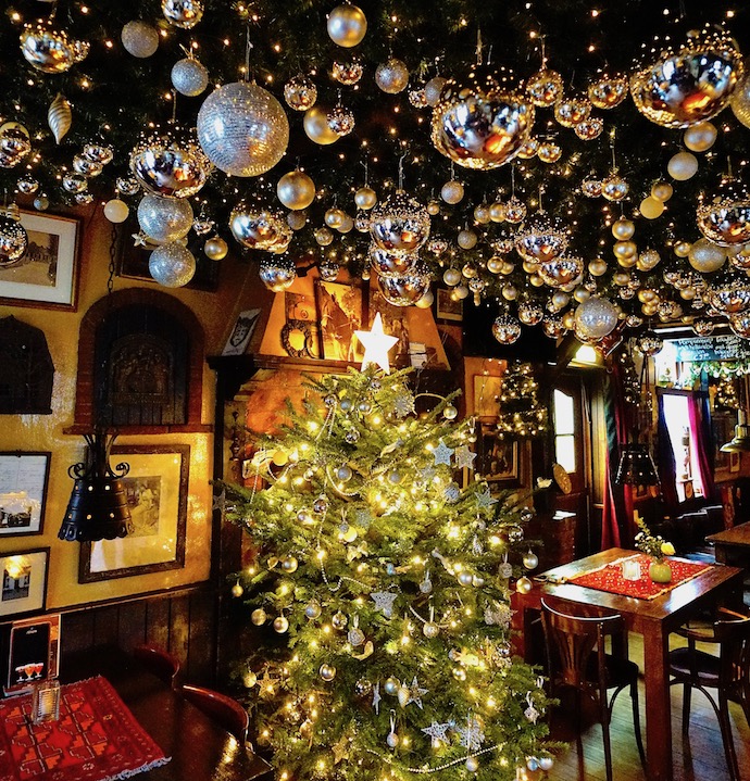 Aan de gasten wordt traditiegetrouw gevraagd hún licht te laten schijnen over de ballen aan het plafond …