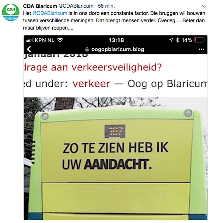 … geeft aan dat CDA-Blaricum niets moet hebben van vrijheid van meningsuiting en attenderende journalistiek.