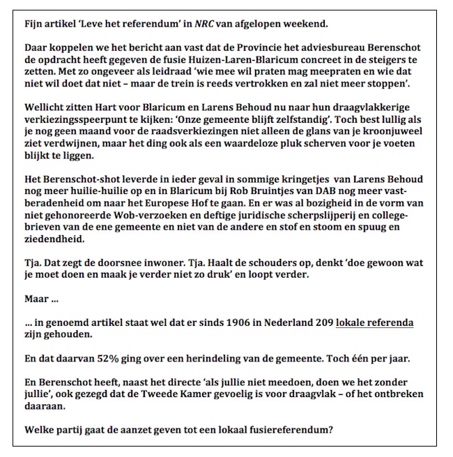 Fusiereferendum – wie durft het, wie wil het? Oog op Blaricum bestuur, nieuws, politiek 27 februari 2018 Delen kan hier: Share op Facebook (Opent in een nieuw venster) Facebook Delen op X (Opent in een nieuw venster) X Email a link to a friend (Opent in een nieuw venster) E-mail Afdrukken (Opent in een nieuw venster) Print Delen op WhatsApp (Opent in een nieuw venster) WhatsApp Meer Share on Threads (Opent in een nieuw venster) Threads Vind-ik-leuk Aan het laden... Gerelateerd Gepubliceerd door Oog op Blaricum Bekijk alle berichten van Oog op Blaricum Gepubliceerd 27 februari 2018