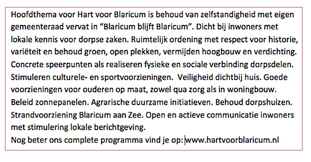 Hart voor Blaricum mag het zeggen – 100 woorden Oog op Blaricum bestuur, politiek 18 maart 2018 Delen kan hier: Share op Facebook (Opent in een nieuw venster) Facebook Delen op X (Opent in een nieuw venster) X Email a link to a friend (Opent in een nieuw venster) E-mail Afdrukken (Opent in een nieuw venster) Print Delen op WhatsApp (Opent in een nieuw venster) WhatsApp Meer Share on Threads (Opent in een nieuw venster) Threads Vind-ik-leuk Aan het laden... Gerelateerd Gepubliceerd door Oog op Blaricum Bekijk alle berichten van Oog op Blaricum Gepubliceerd 18 maart 2018