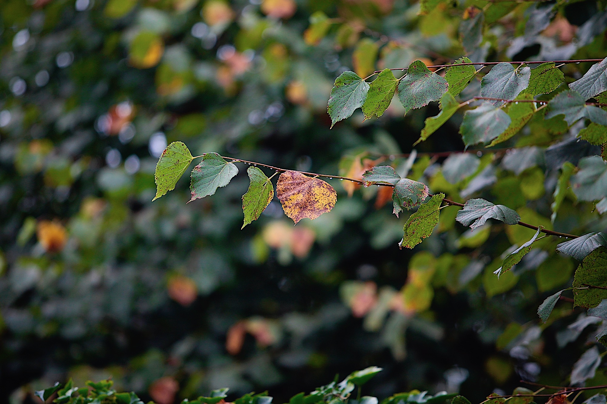 Ten tweede omdat men nog de druppels van de nachtelijke regenbuien ‘haarscherp’ aan de takken ziet hangen.