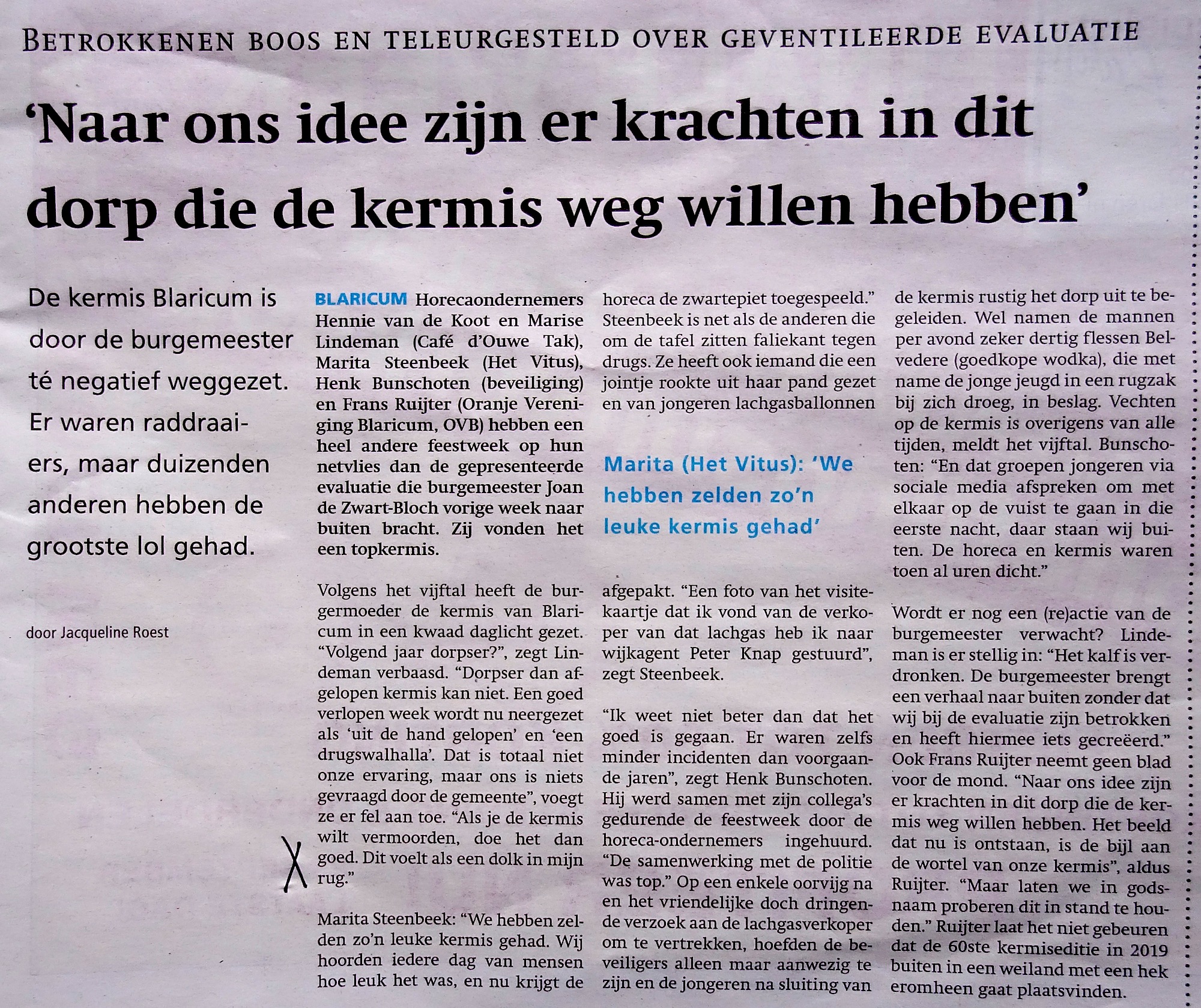 Ik heb deze kermis ook ervaren conform het beeld dat Marita en Marise schetsen.Het allermooiste van dit artikel is nog dat ik met mijn 48 jaar nog onder de jongeren val! Lees de zin “en de jongeren na slutiing van de kermis rustig het dorp uit te begeleiden”. Hoewel, het dorp ben ik uiteraard ook ’s nachts niet uit geweest.
