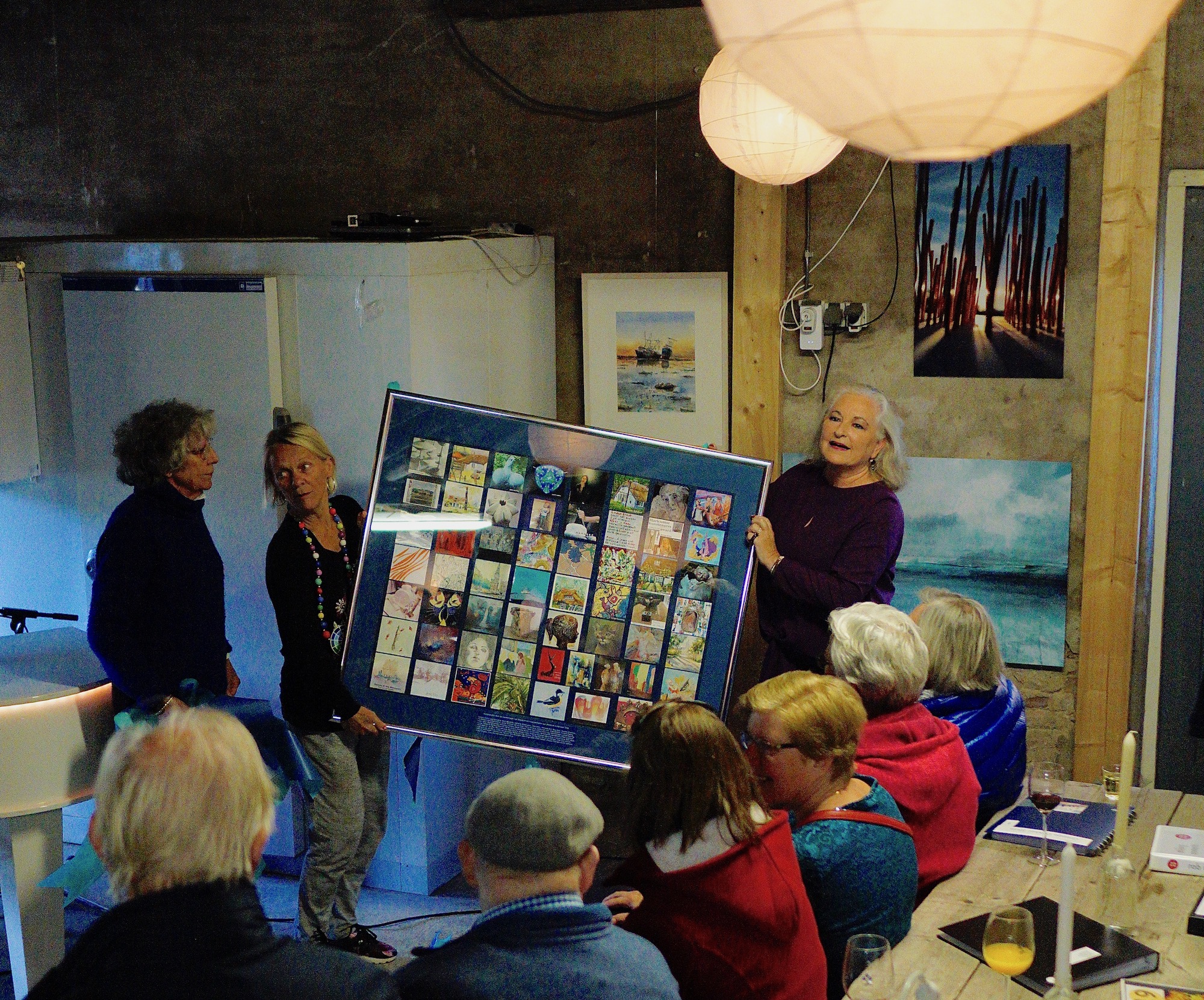 Vanmiddag is – onder het genot van het originele hapje, drankje en muziekje – in de Aspergeboerderij Boereblij de Atelierroute 2018 van start gegaan. Omdat Blaricum Kunststad van het jaar 2018 is, en ‘wij kunstenaars dit uit de krant mochten vernemen’, kreeg de burgemeester na haar openingswoordje een collectief kunstwerk aangeboden … Met de wens dat dit ergens in het gemeentehuis (van Blaricum) een fijne plaats gaat krijgen. Morgen en zondag kunt u terecht in de diverse ateliers.