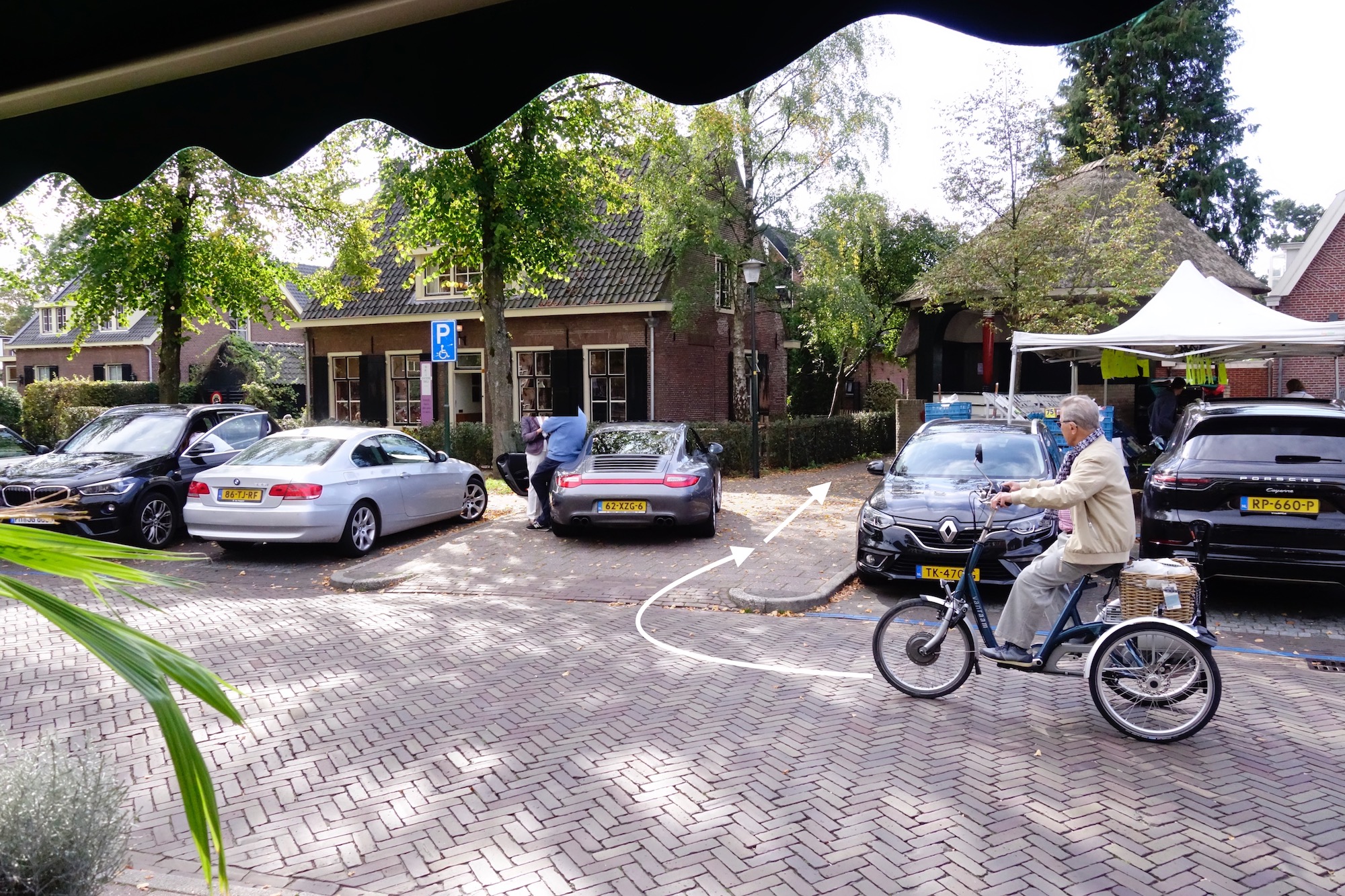 … en boze blikken van minder mobielen, wordt er tot koffie en verder-kwaak besloten en wordt de bolide …
