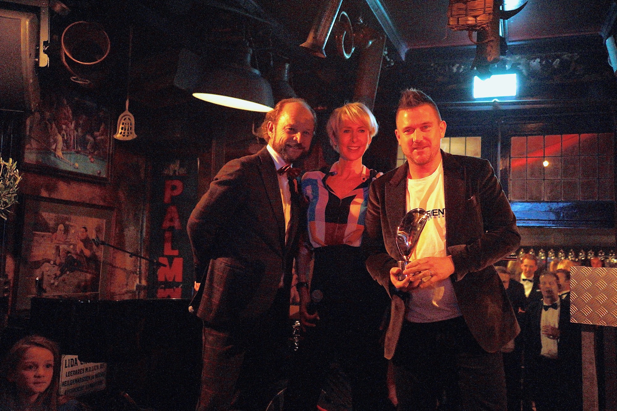 Links Eduard Schaepman, geestelijk vader van het Mossel Gala, naast hem Monique des Bouvrie, ambassadeur van Lymph&Co, de organisatie die vorig jaar geleden de Award heeft gewonnen.
