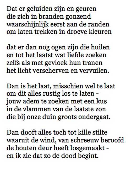 Gedicht Oog op Blaricum gedicht 11 december 2018 Delen kan hier: Share op Facebook (Opent in een nieuw venster) Facebook Delen op X (Opent in een nieuw venster) X Email a link to a friend (Opent in een nieuw venster) E-mail Afdrukken (Opent in een nieuw venster) Print Delen op WhatsApp (Opent in een nieuw venster) WhatsApp Meer Share on Threads (Opent in een nieuw venster) Threads Vind-ik-leuk Aan het laden... Gerelateerd Gepubliceerd door Oog op Blaricum Bekijk alle berichten van Oog op Blaricum Gepubliceerd 11 december 2018