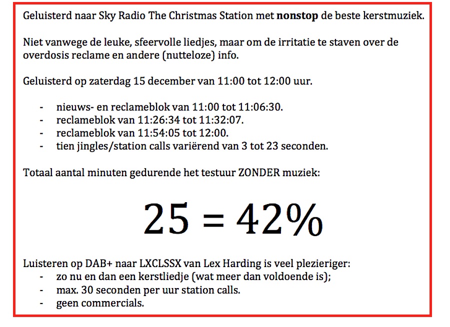 Sky Radio is vooral een Commercial Station Oog op Blaricum journalistiek (tekst), nieuws 15 december 2018 Delen kan hier: Share op Facebook (Opent in een nieuw venster) Facebook Delen op X (Opent in een nieuw venster) X Email a link to a friend (Opent in een nieuw venster) E-mail Afdrukken (Opent in een nieuw venster) Print Delen op WhatsApp (Opent in een nieuw venster) WhatsApp Meer Share on Threads (Opent in een nieuw venster) Threads Vind-ik-leuk Aan het laden... Gerelateerd Gepubliceerd door Oog op Blaricum Bekijk alle berichten van Oog op Blaricum Gepubliceerd 15 december 2018