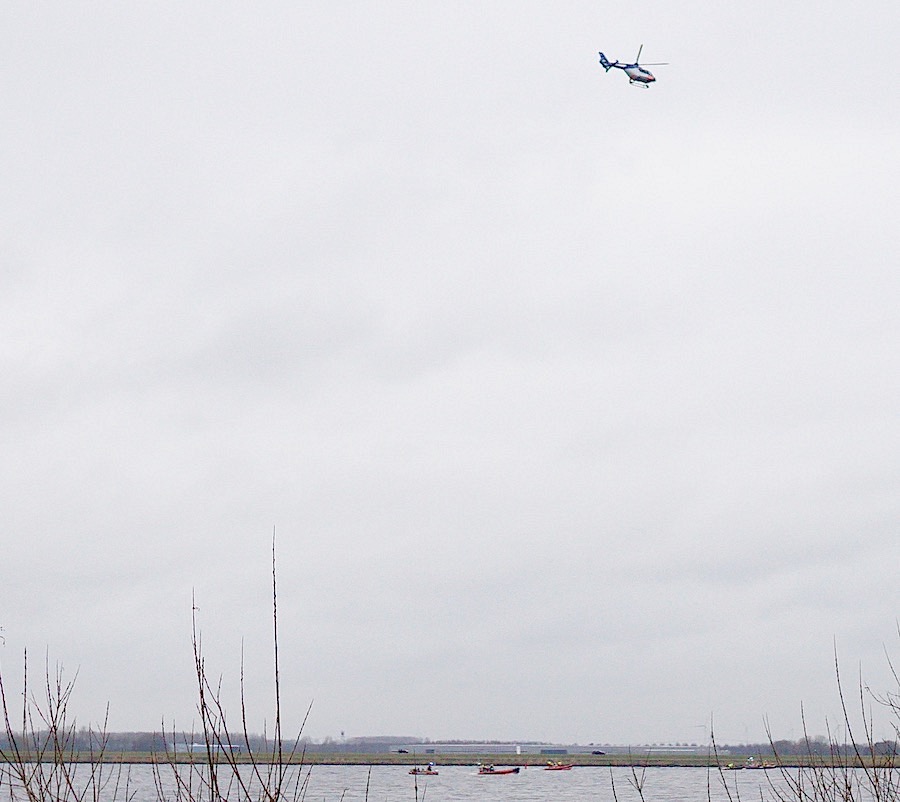 Meerdere eenheden van politie, brandweer en KNRM-posten hebben gezocht, ondersteund door een politiehelikopter; op de wal stonden meerdere ambulances en de traumaheli stand-by. Er is niets gevonden. Mogelijk heeft melder (vanaf de A27) een bocht makend modelvliegtuig aangezien voor een crash.