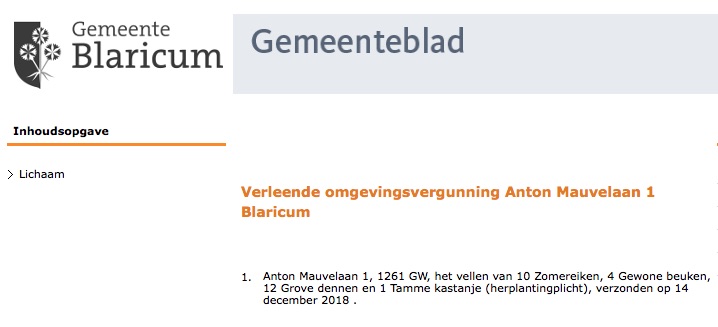 Anton Mauvelaan 1: de omvangrijke kap (27 bomen, zie onder) is volgens de nieuwe eigenaar nodig vanwege a) achterstallig tuinonderhoud en b) behoefte aan meer licht en bouwruimte. De woning gaat namelijk plat (schijnt ver over haar t.h.t. te zijn), architect en gemeente zijn na een jaar in ‘de afrondende fase’ wat betreft bestemmingsplannen en welstand. Volgens eigenaar wordt er iets moois teruggebouwd en zullen de blijvende bomen veel beter tot hun recht gaan komen. Wordt ge- en vervolgd.